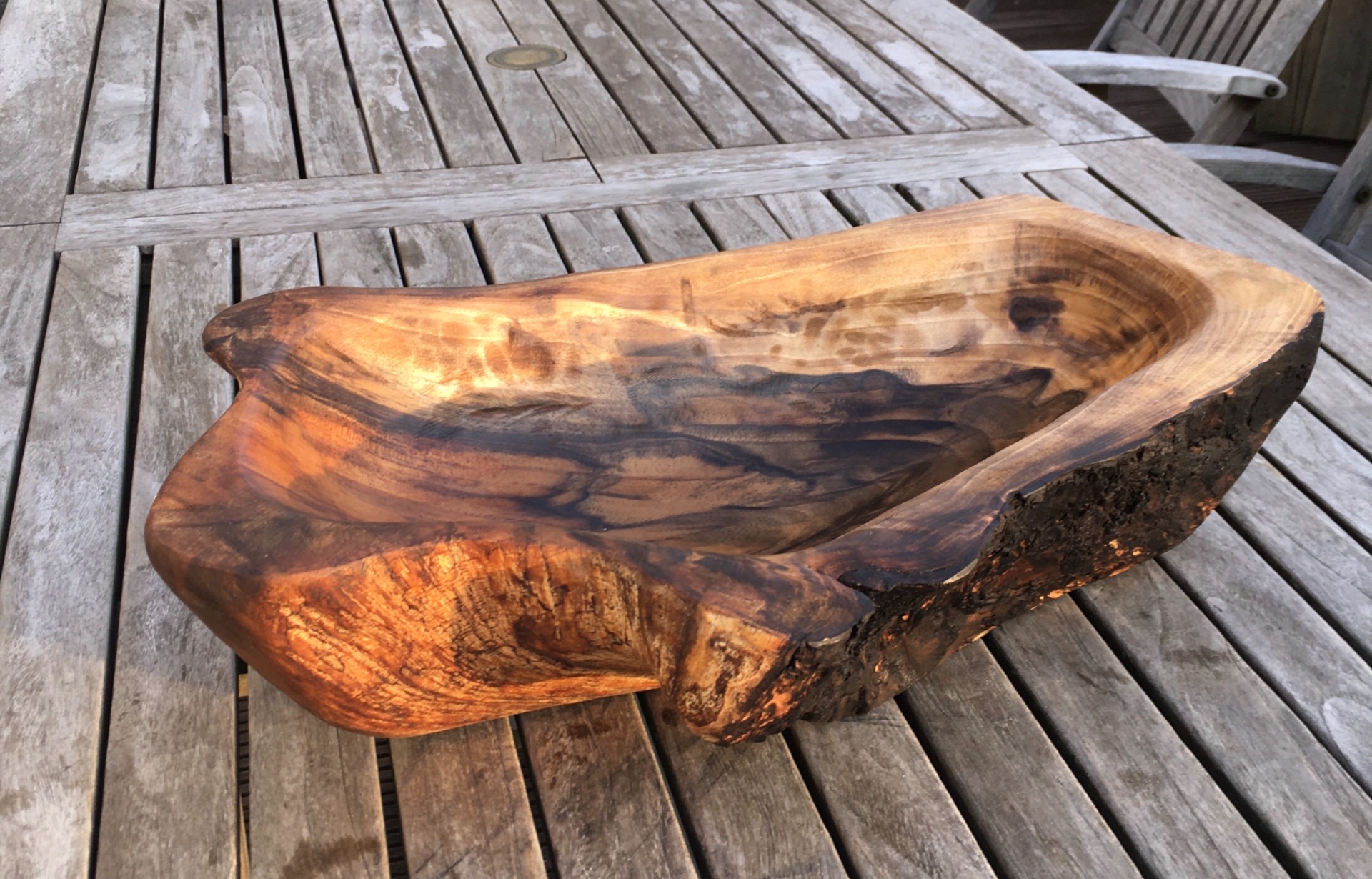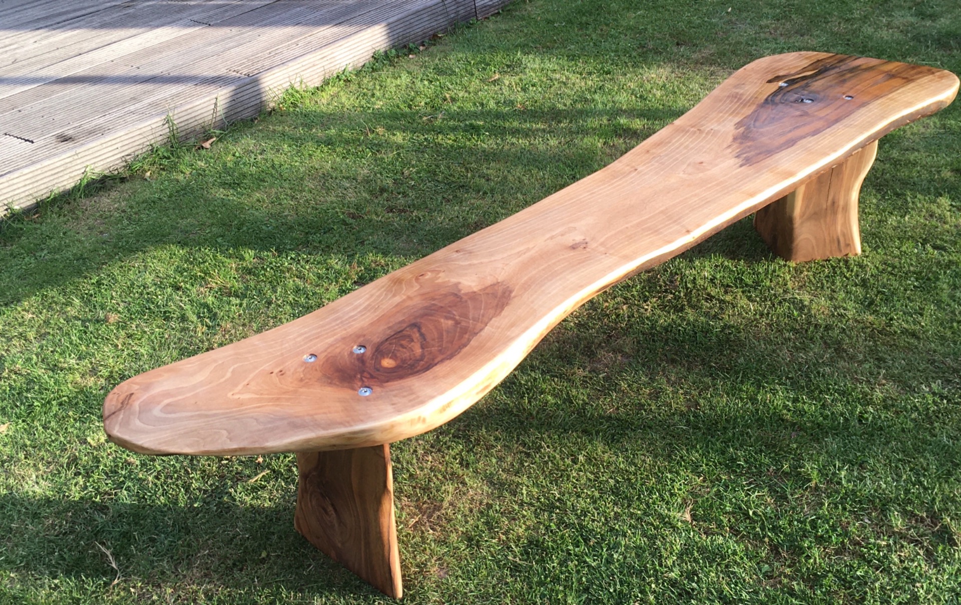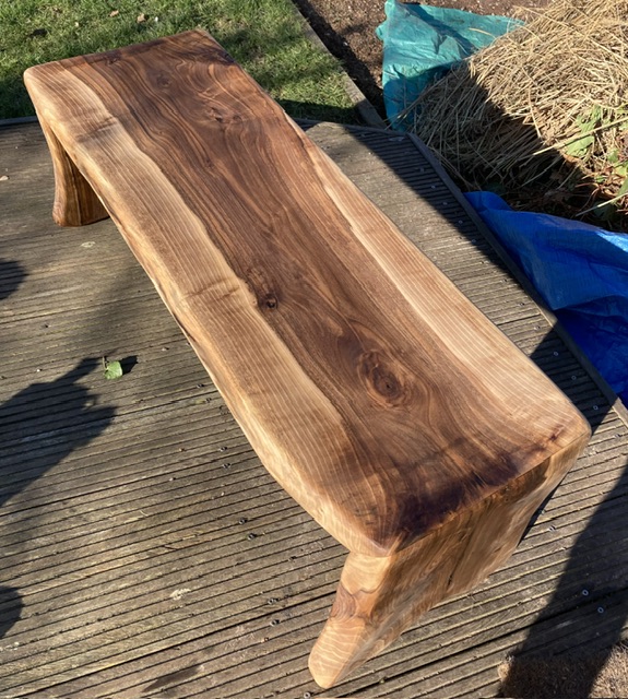 notelaren zitbank, gemaakt uit kapotte notenboom uit onze tuin.