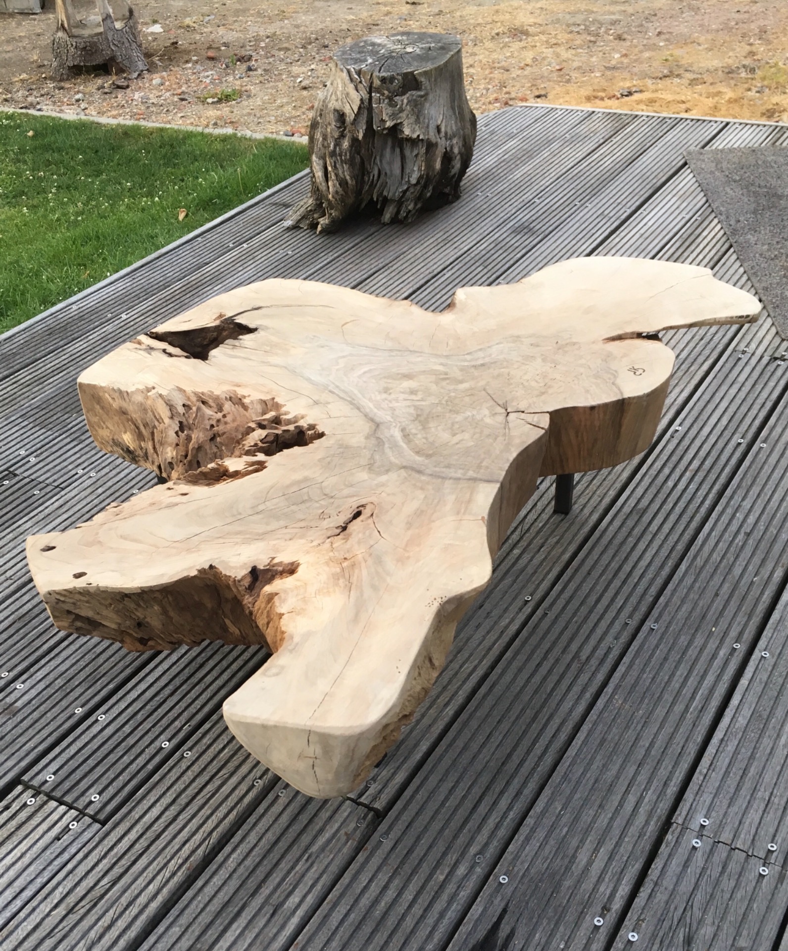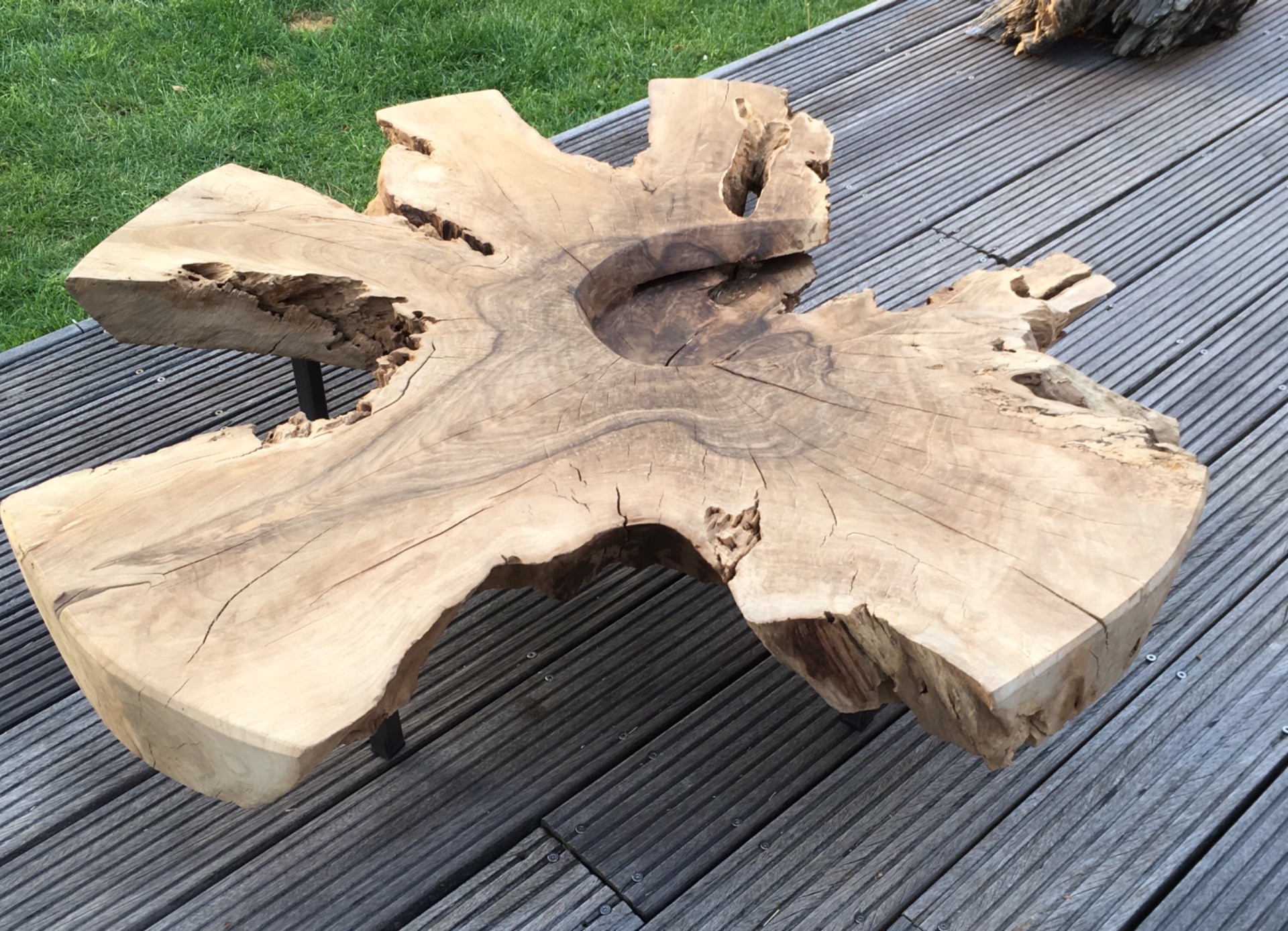 tafel uit gehele wortel van walnoot. gestorven aan schimmelinfectie.