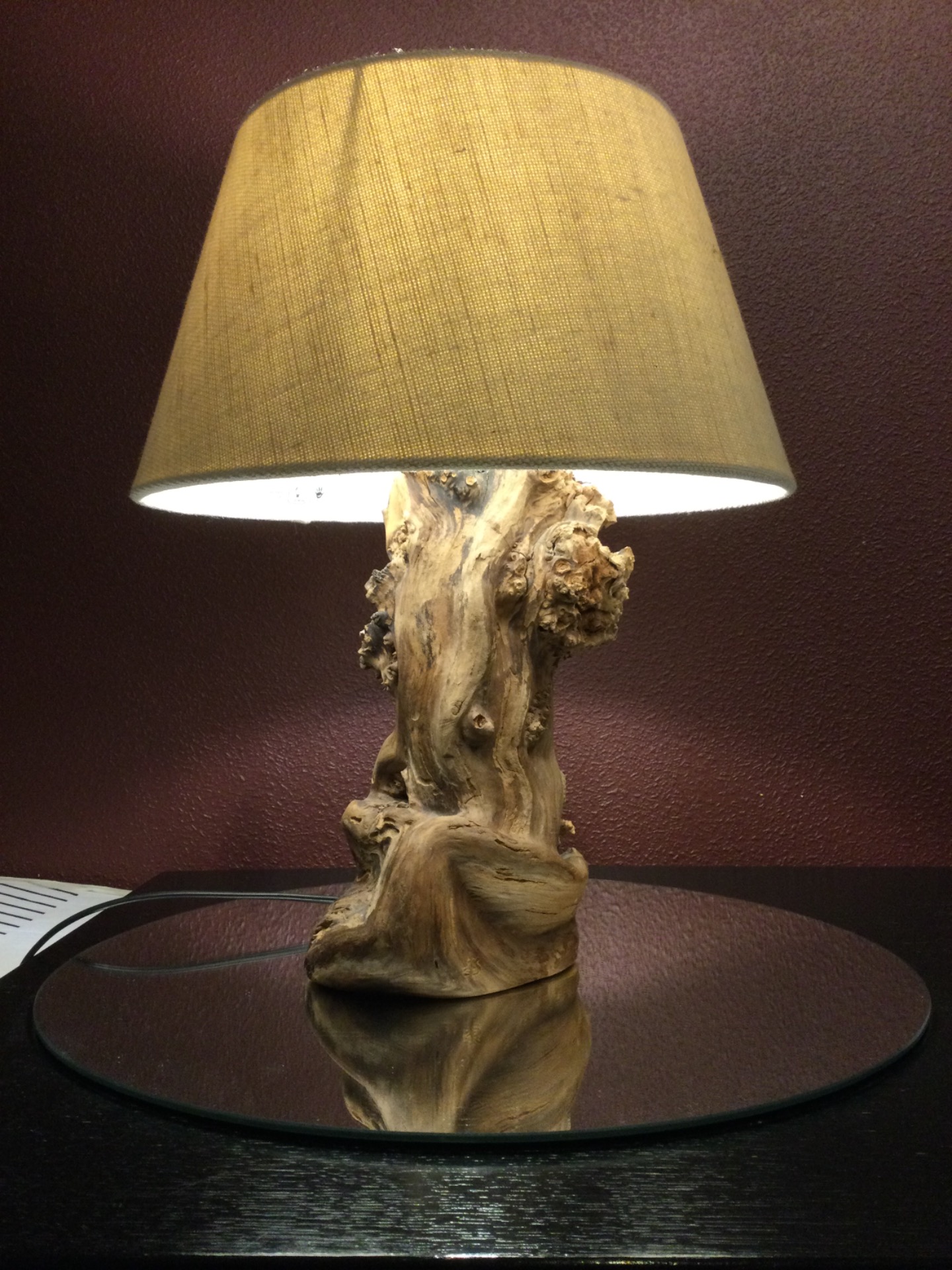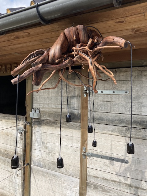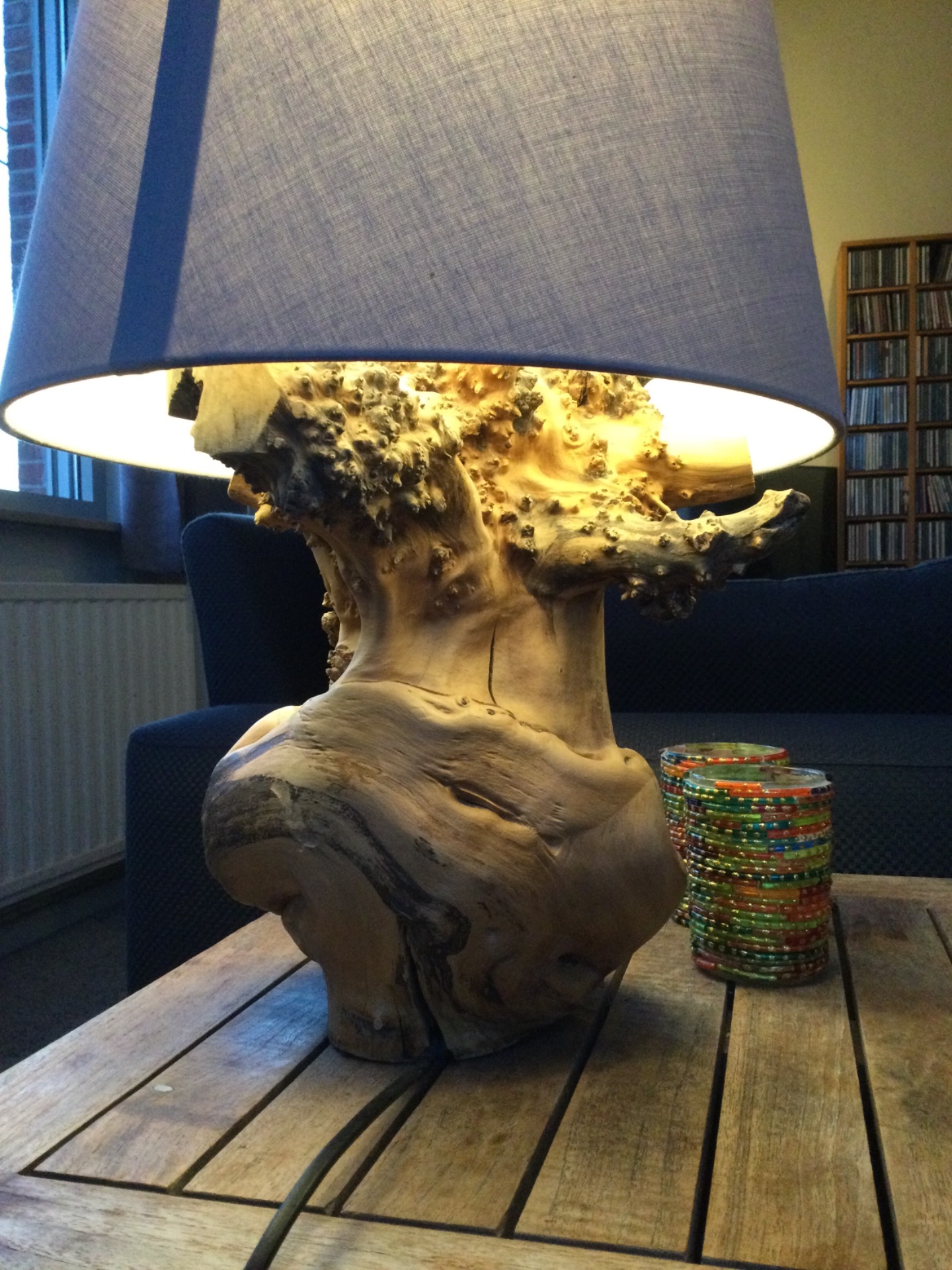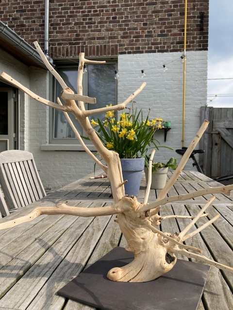 echte haspengouwse lamp, gemaakt uit wortelstok van appelboom.