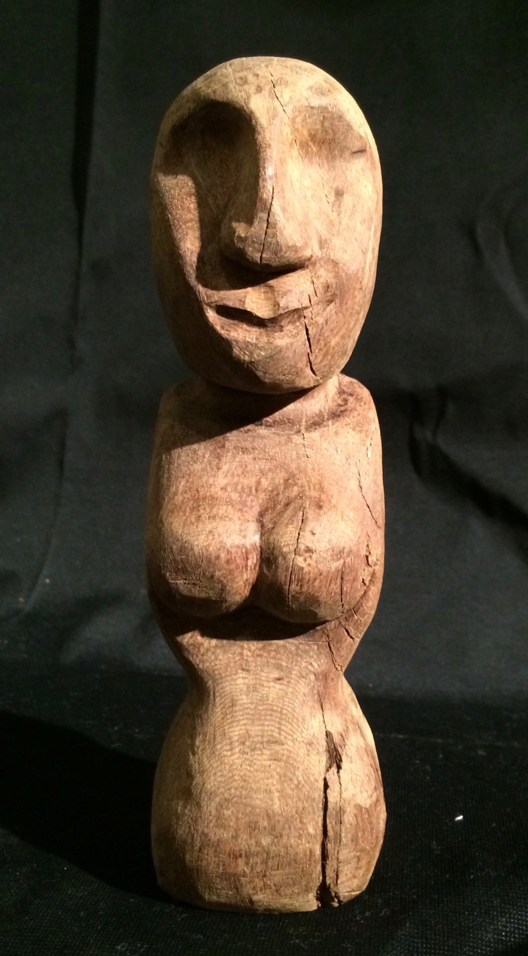 buste uit tropisch hardhout. was vroeger een paaltje in de school van Ulbeek.
