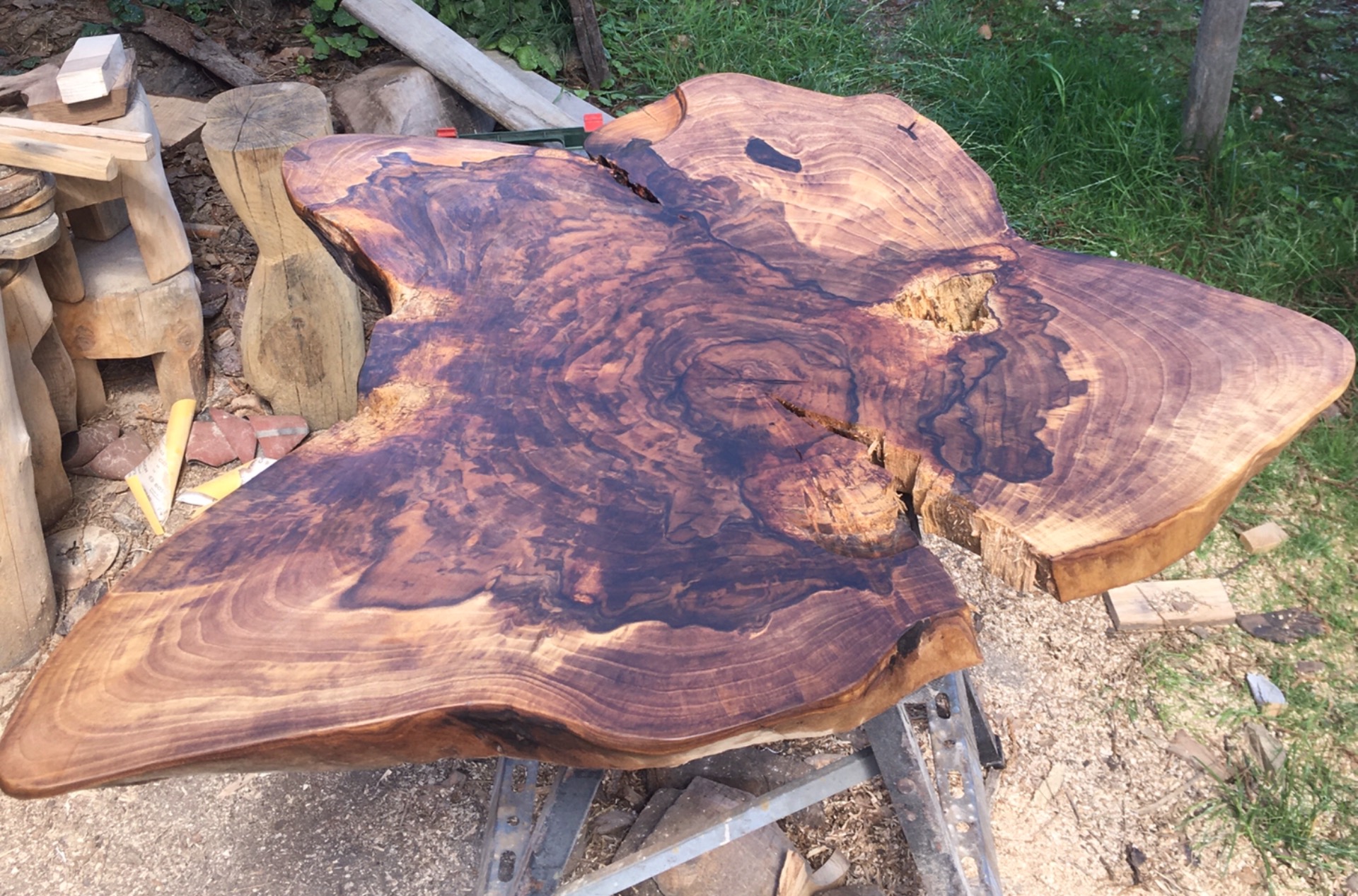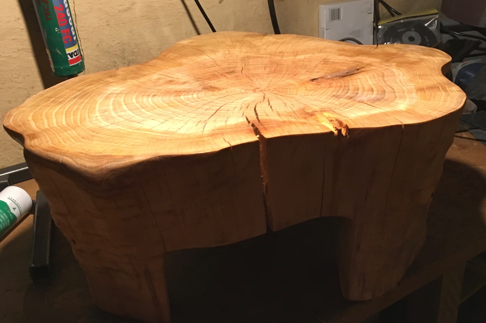 walnoten onderstamtafel in wording. doorsnede van ongeveer 90cm. (staat nog te drogen.)