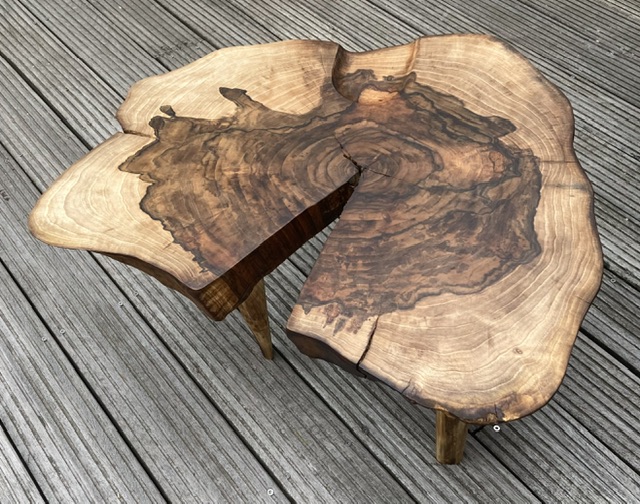 tafeltje uit stam van walnoot.