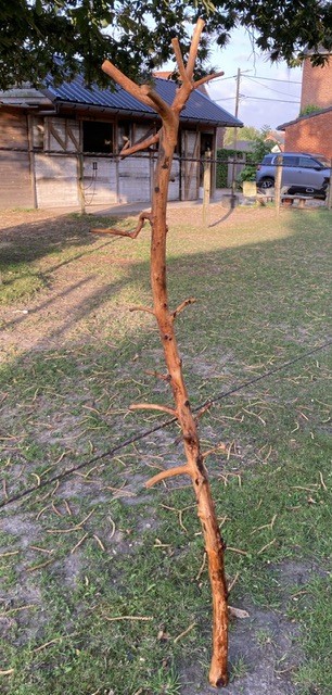 kapstok in de maak, moet nog een voet krijgen. appelboompje dat de droge zomer niet heeft overleefd.