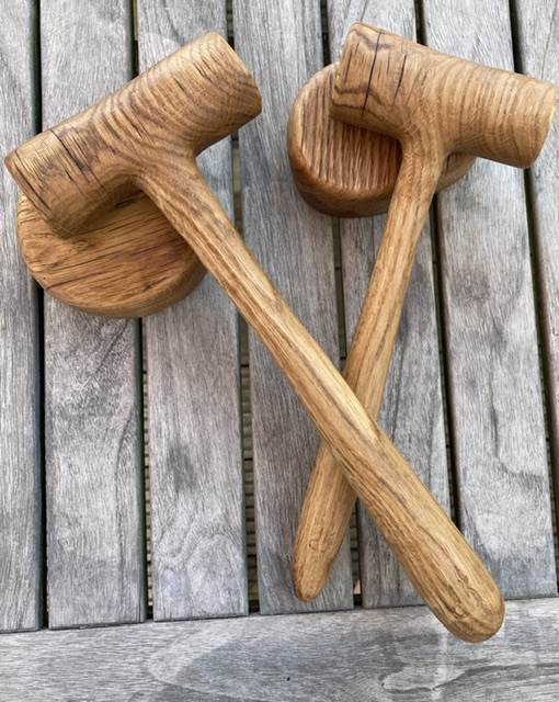 hamertjes uit eiken balk van meer dan 100jaar oud, gerecupereerd uit hoeve van de buren. gemaakt uit een stuk. waar gerechtigheid moet geschieden ;-).